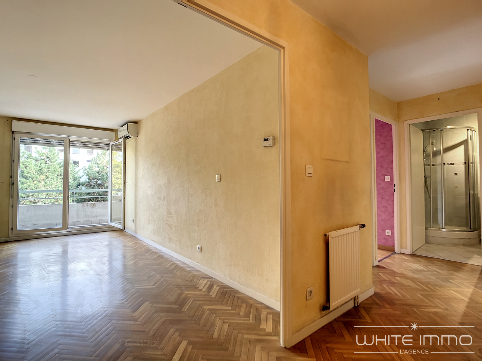 VENDU PAR L'AGENCE - LYON 3ème, EXCLUSIVITE WHITE IMMO, appartement d'environ 50 m2 dans une copropriété des années 1990 au 3ème étage, entièrement au calme et donnant sur un jardin intérieur. Pièce de vie en parquet, avec accès sur balcon de 8 m2. Cuisine équipée, accès également sur le balcon. Une chambre en parquet avec placard. Grande salle d'eau. WC indépendant. Exposition Est. Climatisation. Chauffage inidividuel au gaz. DPE : C. Notre avis : appartement à rafrâichir pour le relooker, mais vraiment bien placé. Prix affiché frais d'agence inclus (honoraire charge vendeur). Votre contact : Sandrine Vacher White Immo l'Agence 07 60 36 34 04