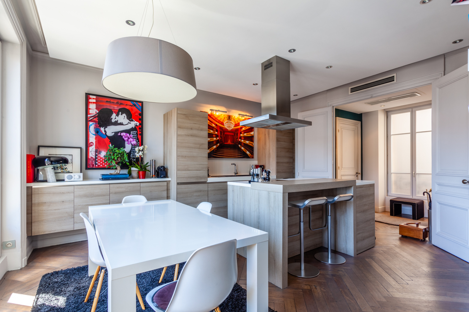 VENDU PAR L'AGENCE - LYON 2EME, EXCLUSIVITE WHITE IMMO, coeur presqu'ile, quartier Grolée, étage élevé, bénéficiant d'une vue dégagée, superbe appartement traversant Est/Ouest de 110 m2 avec balcon filant. Rénovation de très belle qualité dans le respect total de l'ancien avec tout le confort du moderne. Grande cuisine entièrement équipée avec ilôt central, bel espace de réception, 2 chambres, dressing compet et 2 salles d'eau. Climatisation réversible. Cave et grenier. DPE en attente. Parties communes de standing avec ascenseur. Prix affiché frais d'agence inclus (honoraires charge vendeur). Votre contact : Agence White immo 04 72 44 42 00