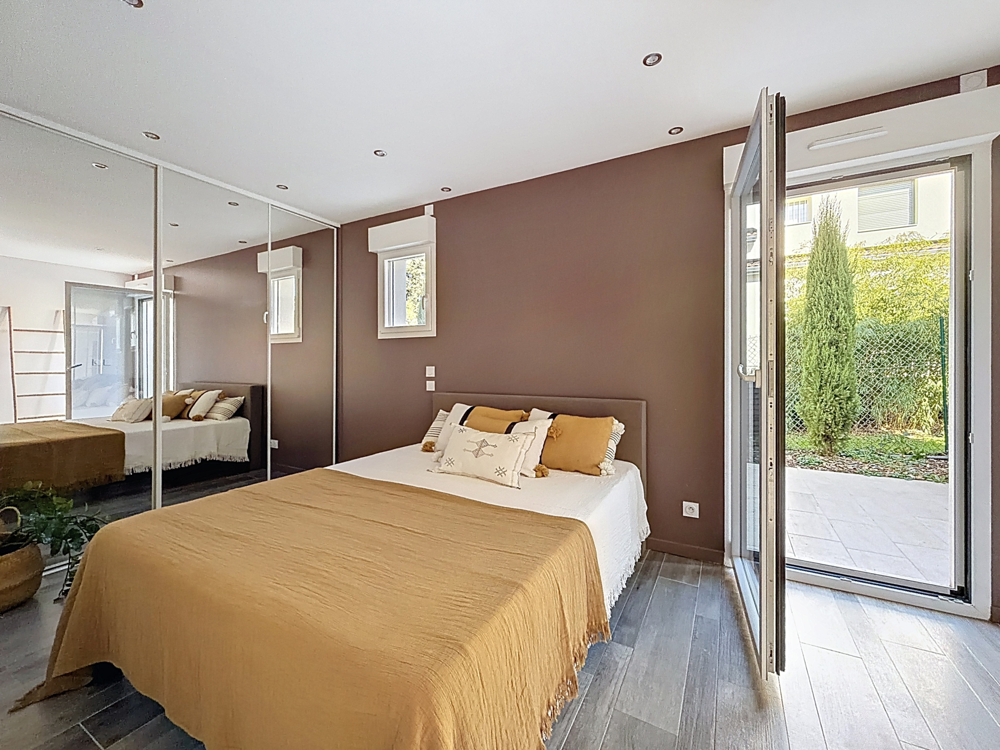 Au calme absolu tout en étant à quelques minutes à pied du centre du village et de toutes les commodités, 84 m2 habitables répartis en une très belle et lumineuse pièce de vie de 42 m2 (triple exposition), une cuisine entièrement équipée (Schmidt), coin salon et espace repas donnant sur la terrasse de 25 m2 et le jardin magnifiquement végétalisé. Sur le niveau inférieur, 2 chambres avec placards donnant elles aussi sur l'extérieur compte tenu de la configuration du terrain. Salle de bains avec baignoire et fenêtre, buanderie, wc séparés.