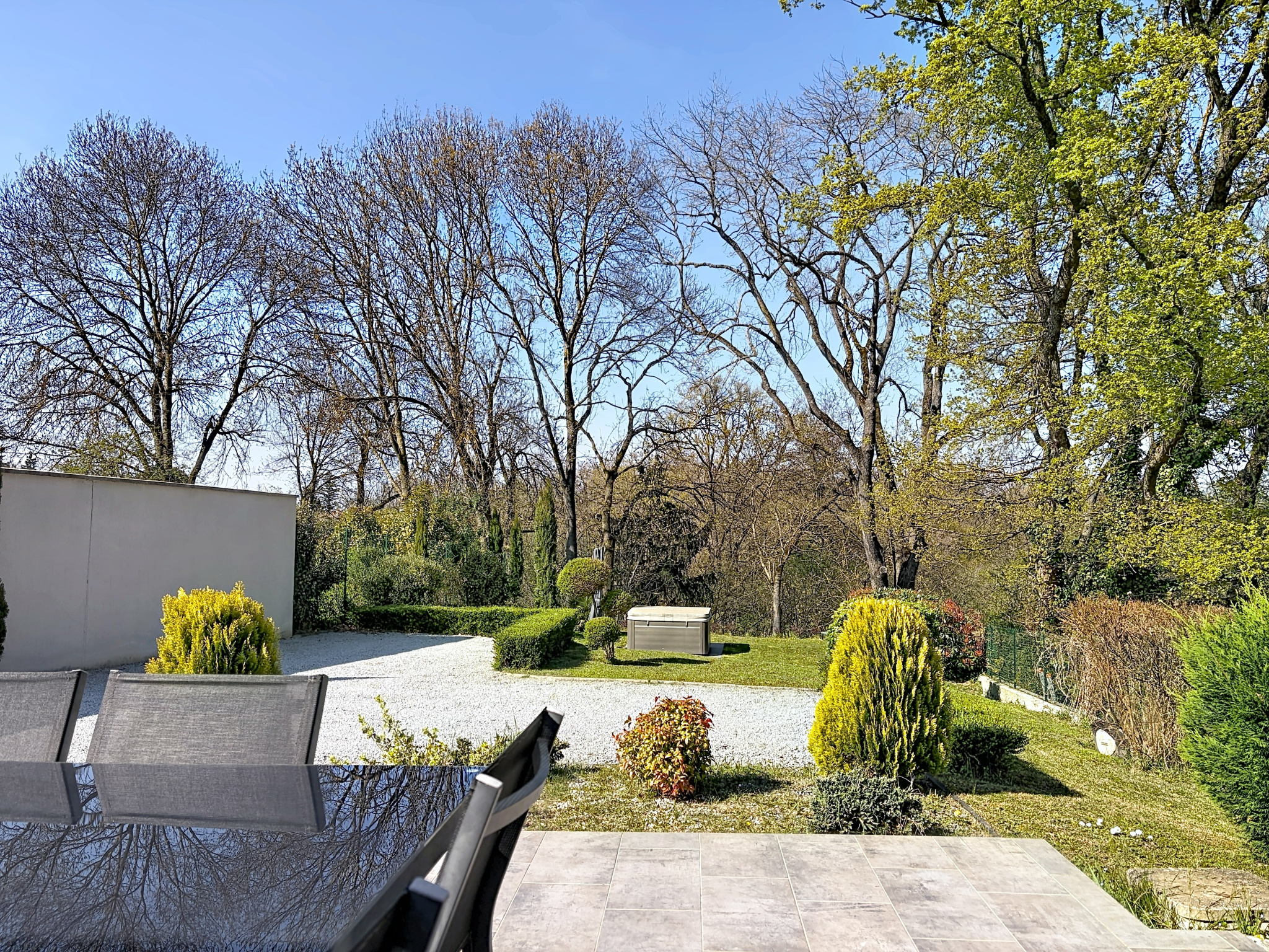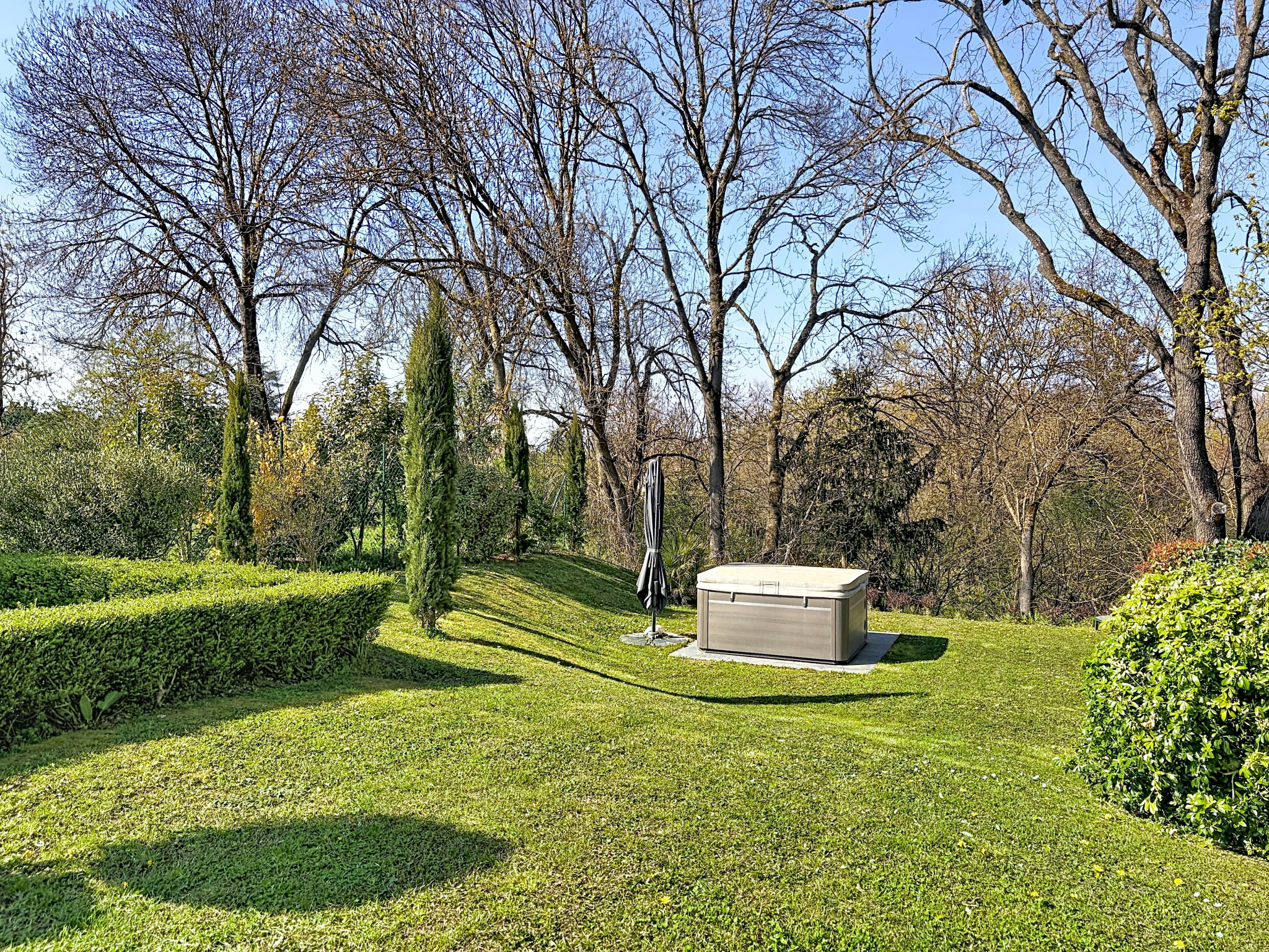 Le jardin est clos, arboré, il dispose d'une petite cabane pour le stockage et d'un SPA préservé de tout vis à vis. Un espace de stationnement permet de garer plusieurs véhicules et le portail est motorisé. Tout est comme neuf.