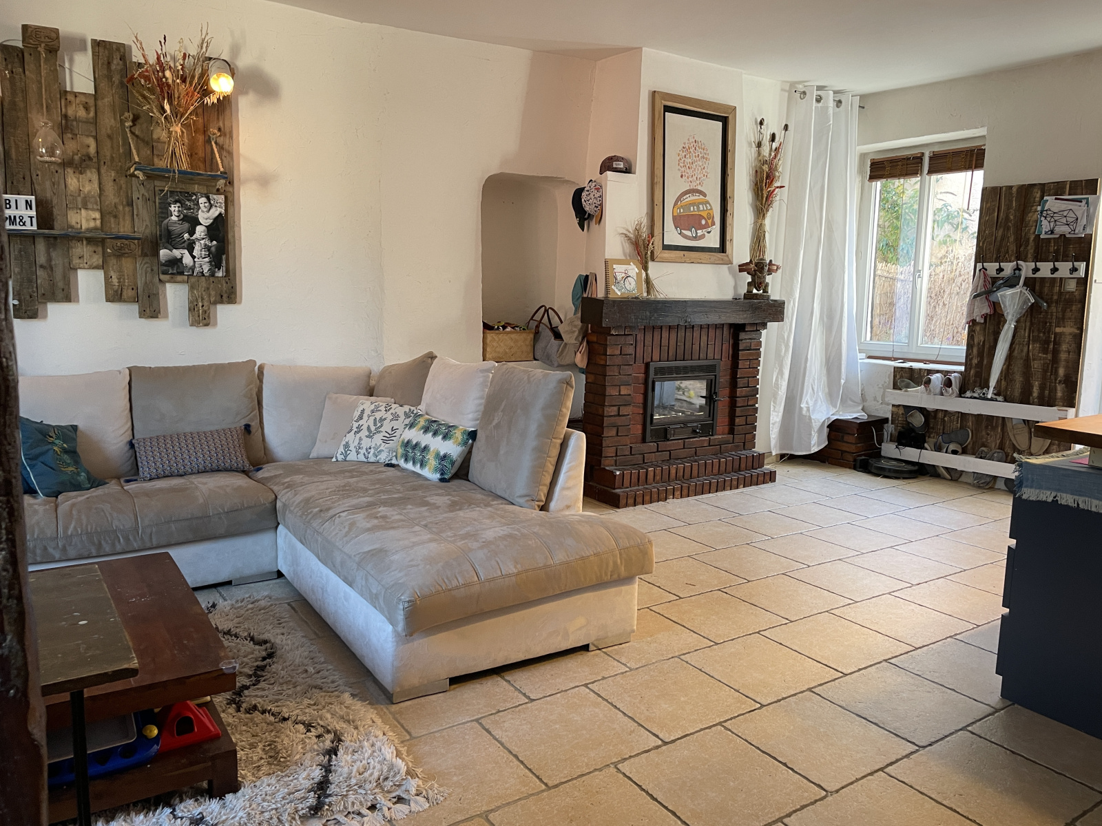 VENDU PAR L'AGENCE - FRANCHEVILLE LE HAUT, CO-EXCLUSIVITE WHITE IMMO, maison de village pour les amoureux de l'ancien. Maison en pierre et pisé, rénovée, dans un hameau à proximité du bourg, d'une surface d'environ 100 m2 répartie sur 2 niveaux. Rez de chaussée avec cuisine équipée US donnant sur salon et salle à manger. Cheminée.WC. A l'étage : Spacieuse salle de bains avec douche et baignoire. Dégagement servant de bureau actuellement , 2 belles chambres dont 1 avec dressing. Double vitrage, chaudière gaz (2015). Petite terrasse de plain pied. Cave de 45 m2 sous la maison. Au calme absolu, avec beaucoup d'espaces boisés autour, mais en étant aussi à proximité des transports en communs, et du tram-train.. D.P.E : C. A voir le + rapidement possible. Prix affiché frais d'agence inclus (charge vendeur). Votre contact : Sandrine Vacher 07 60 36 34 04. Agence White Immo 04 72 44 42 00.
