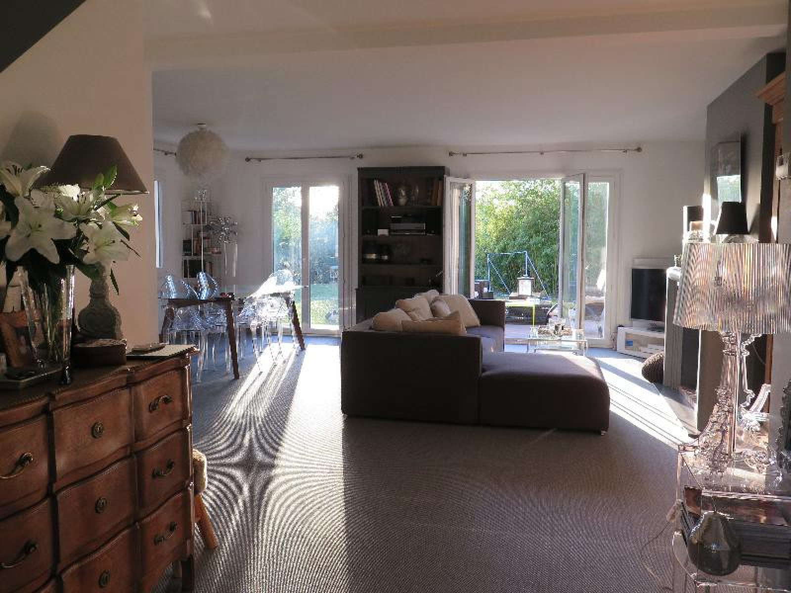 VENDU PAR L'AGENCE, FRANCHEVILLE LE HAUT, idéalement située, au calme, dans la verdure et en parfait état, superbe maison de 135 m2 habitables sur un très beau terrain paysagé d'environ 890 m2. De plain pied avec de beaux volumes, entrée donnant sur grande pièce de vie avec cheminée de 38 m2, cuisine équipée, cellier buanderie. A l'étage, espace TV, 4 chambres dont une suite parentale avec dressing,et salle d'eau. 2ème salle d'eau. Garage double, sous sol complet avec cave. Chauffage au gaz de ville, double vitrage. A proximité des transports en commun (C20 E et Junior Direct). DPE en attente. Notre AVIS : Très jolie rénovation, produit coup de coeur ! Votre contact : Caroline CHOSTAK 07 60 36 26 09 / White immo 04 72 44 42 00