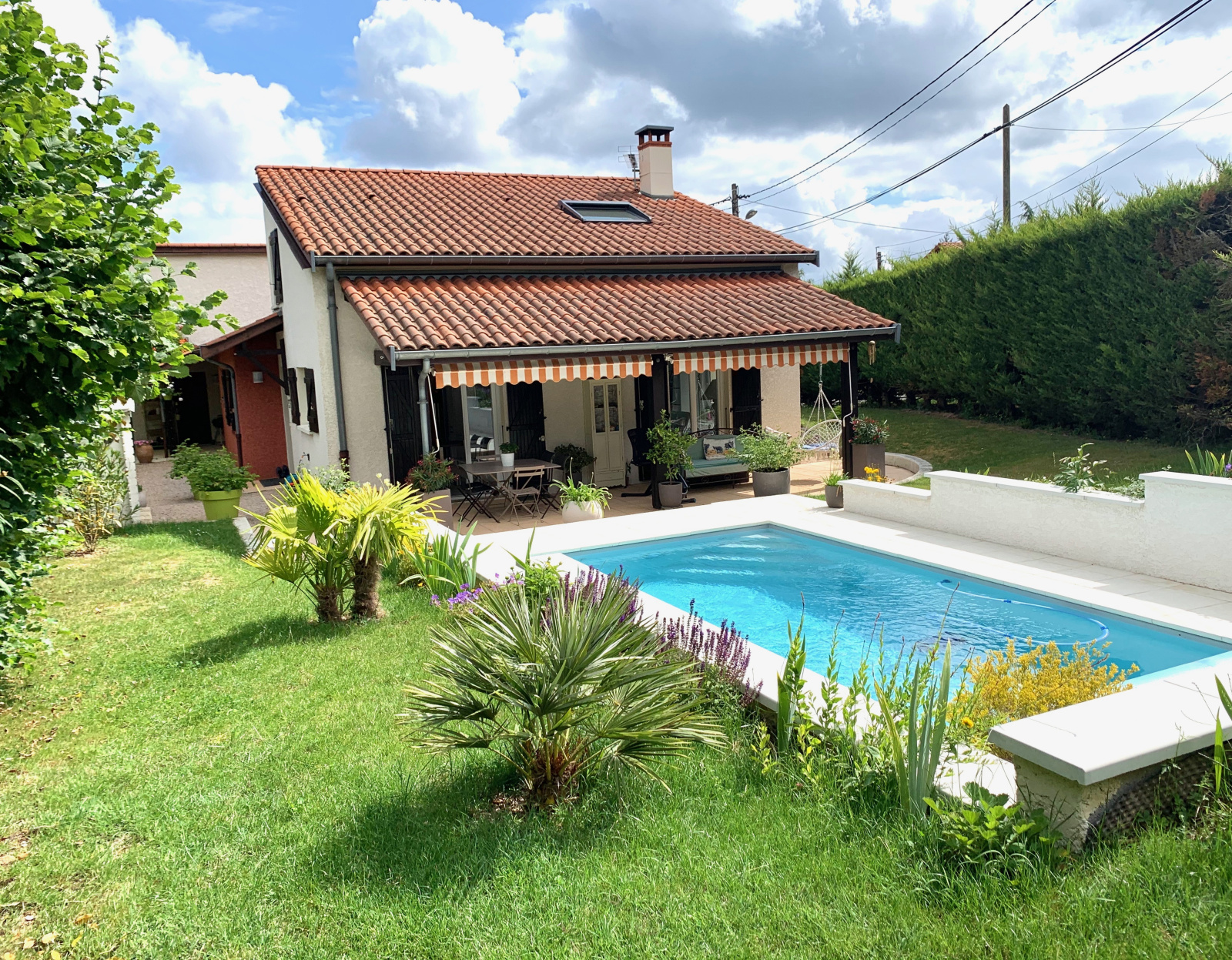 VENDU PAR L'AGENCE - FRANCHEVILLE LE HAUT, EXCLUSIVITE WHITE IMMO, charmante maison quasi entièrement de plain pied de 100 m2 + dépendance aménageable d'environ 40 m2. Séjour cathédrale, mezzanine avec espace TV cosy (possibilité 3ème chambre). Cuisine équipée récente. 2 chambres avec placards + 1 bureau. Salle d'eau moderne avec douche à l'italienne. Buanderie. En annexe, studio indépendant possible, idéal profession liberale ou télétravail. Porche. Terrain clos et paysagé de 940 m2. Piscine parfaitement intégrée, installée en 2019. Proximité immédiate de l'arrêt C20 E. DPE : en attente. Le + produit : maison en parfait état, aucun travaux à prévoir. Prix affiché frais d'agence inclus, honoraires charge vendeur. Votre contact : Caroline Chostak 07 60 36 26 09 Agence White immo 04 72 44 42 00