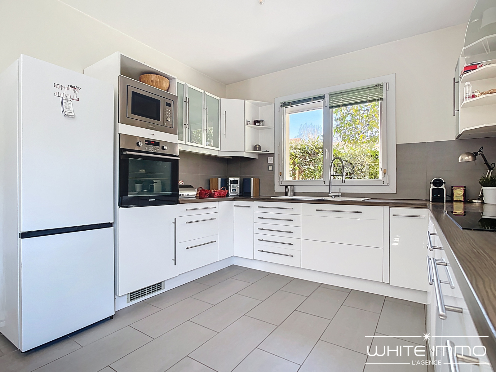 *** VENDU PAR L AGENCE *** FRANCHEVILLE LE HAUT, EXCLUSIVITE WHITE IMMO, proche du village, super au calme, à 2 pas du bus, donc idéalement placée, maison de 118 m2 avec 4 chambres. De plain pied, entrée, spacieuse cuisine US ouverte sur le salon exposé plein Sud, pour une surface totale d'environ 40 m2. Grandes baies vitrées donnant sur une terrasse bois et le jardin. Accès direct au garage. A l'étage, dégagement, 4 chambres dont une suite parentale avec dressing et salle d'eau. Salle de bains. Le postionnement de la maison sur la parcelle optimise la surface utile du jardin clos, exposé essentiellement SUD. Huisseries en PVC double vitrage. volets roulants motorisés, isolation sous combles refaite, poêle à granules. DPE D.