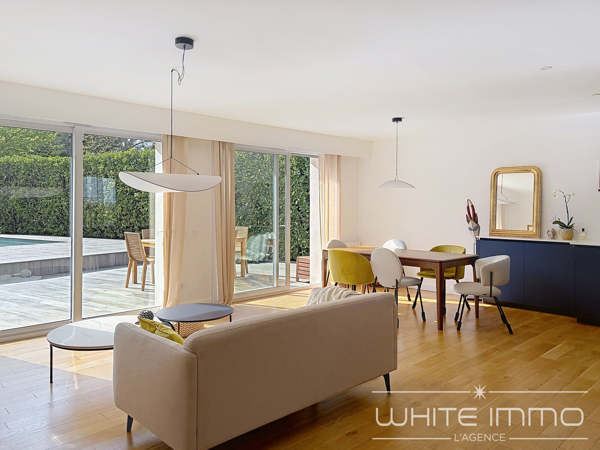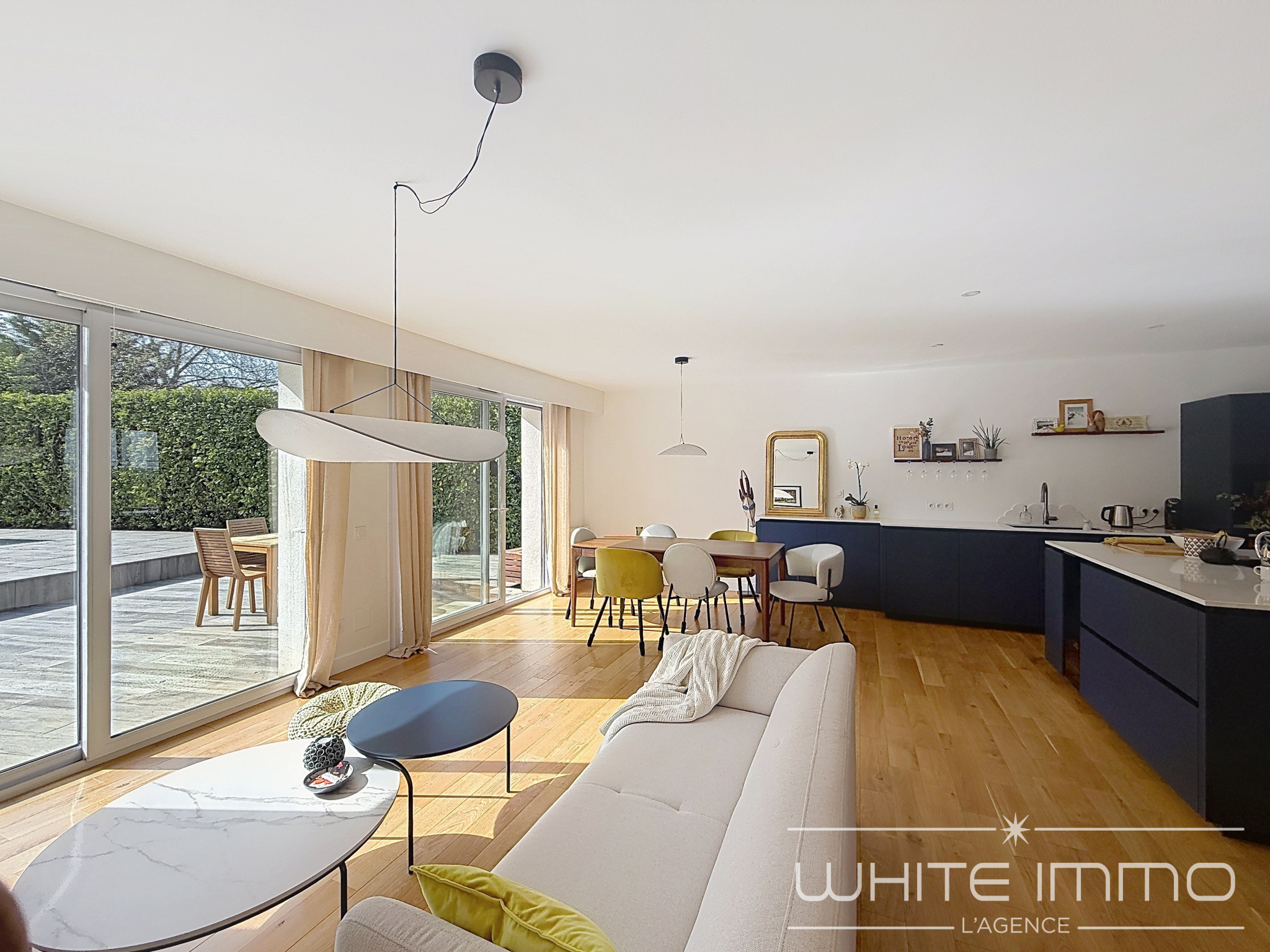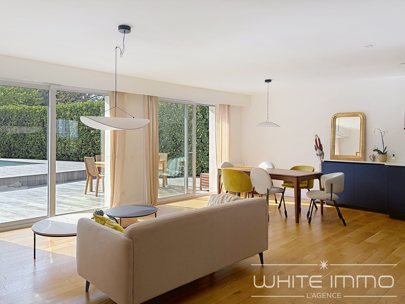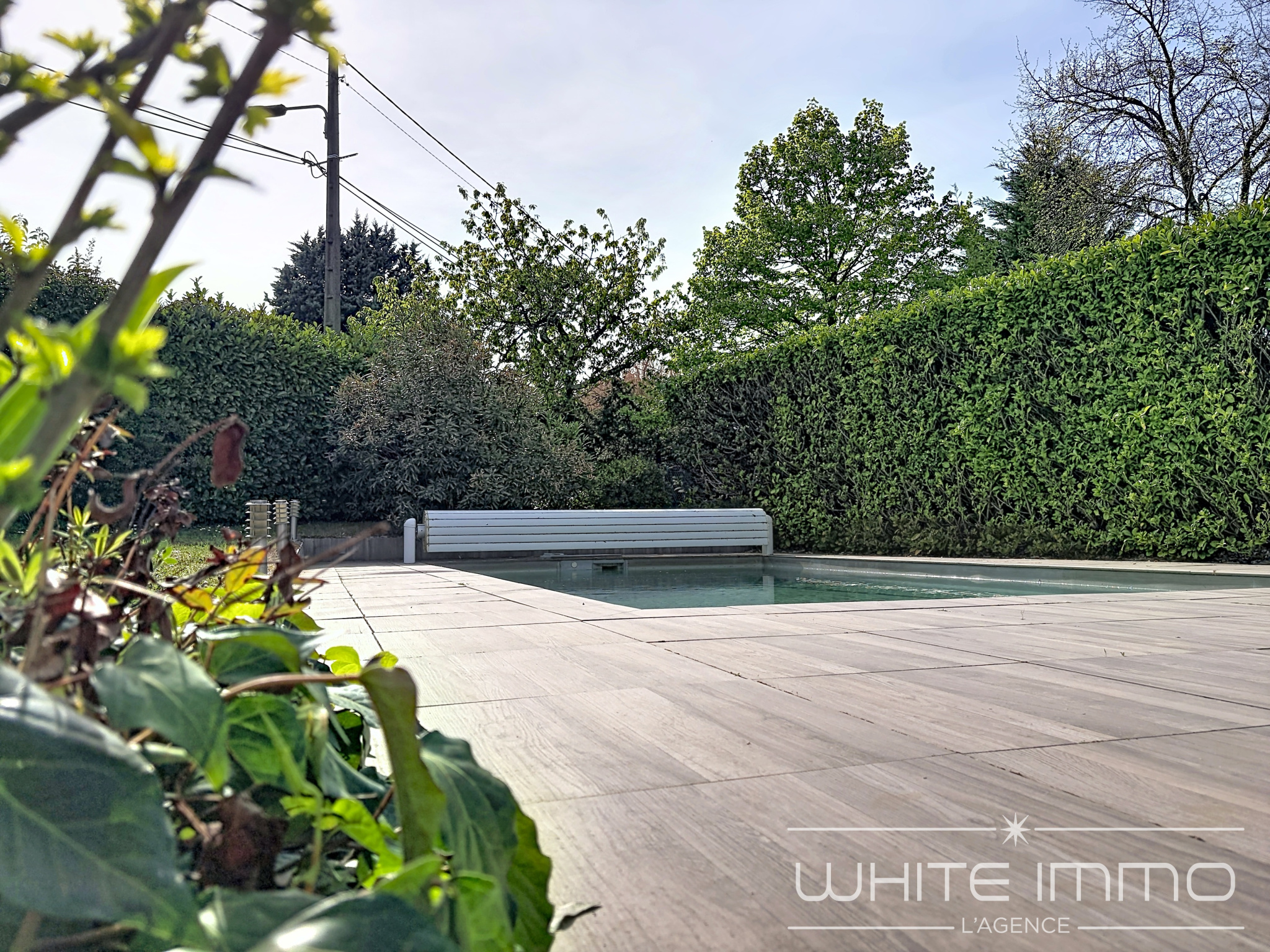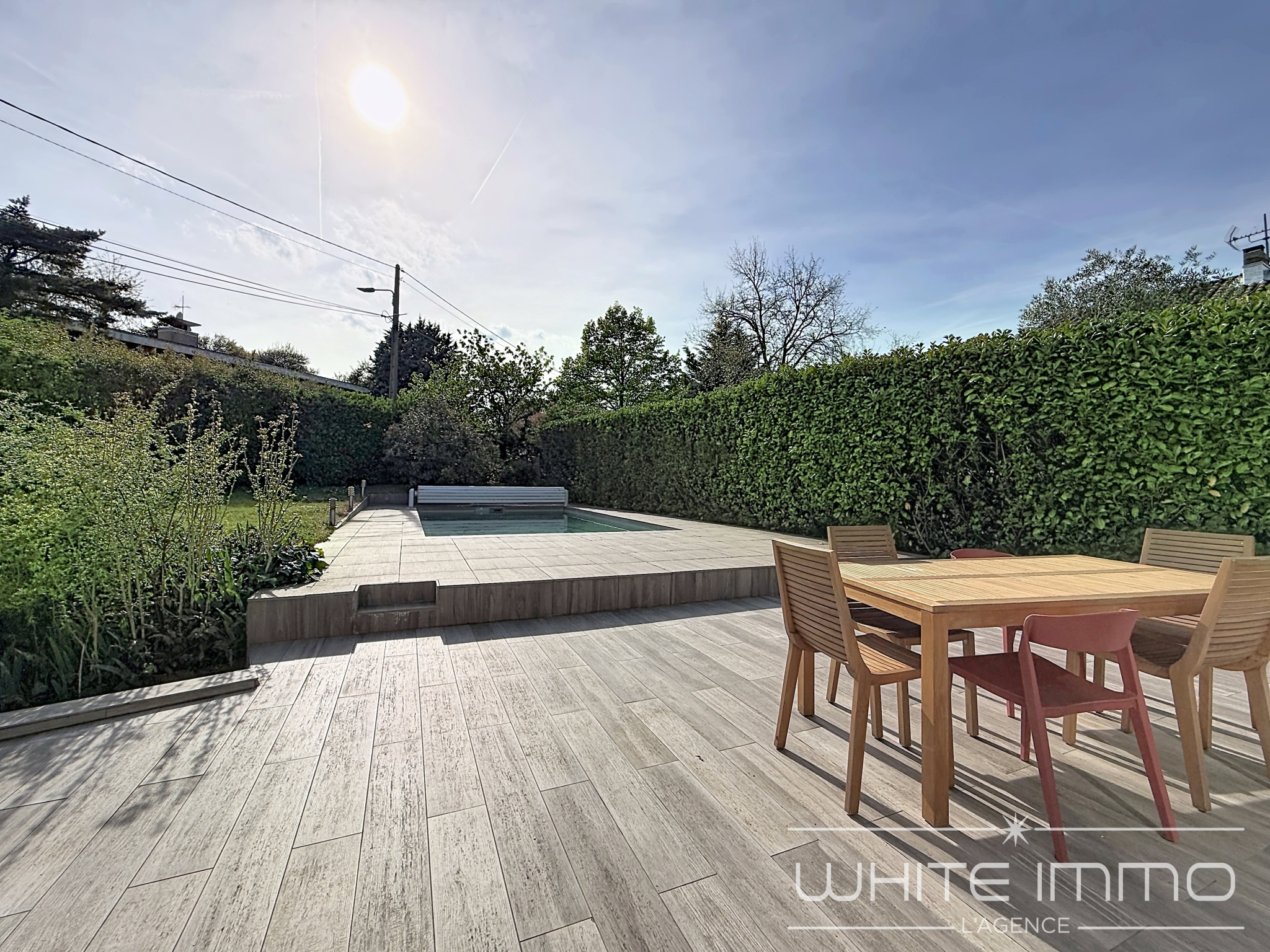 FRANCHEVILLE LE HAUT, EXCLUSIVITE WHITE IMMO, super emplacement, sur un terrain de 914 m2, dans un environnement résidentiel privilégié, charmante maison entièrement rénovée en parfait état aux volumes parfaitement utilisés. Cette maison traditionnelle a fait l'objet de nombreuses transformations et rénovations au fil des prorpiétaires. Actuellement elle se compose d'un sas d'entrée avec placards et d'une superbe pièce de vie carrée d'environ 50 m2, traversante Est / Ouest avec de grandes baies donnant sur la terrasse et la piscine. La cuisine US est entièrement équipée et très récente (3 ans), elle ouvre sur une terrasse à l'Est avec vue bien dégagée .