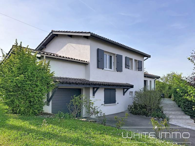 Maison parfaitement entretenue de 140 m2 habitable avec sous-sol complet, grand grenier et double garage. Lumineuse pièce de vie exposée Sud Est, avec cheminée à insert. Cuisine semi équipée de xx m2 indépendante mais qui peut etre ouverte car une simple cloison la sépare du séjour. Les 2 espaces donnent de plain-pied sur une terrasse avec pergola et profitent d'une vue dégagée.