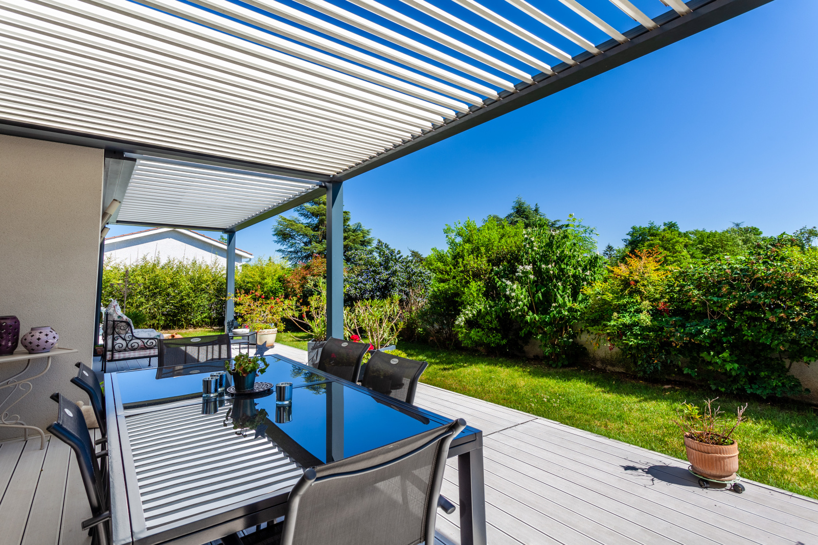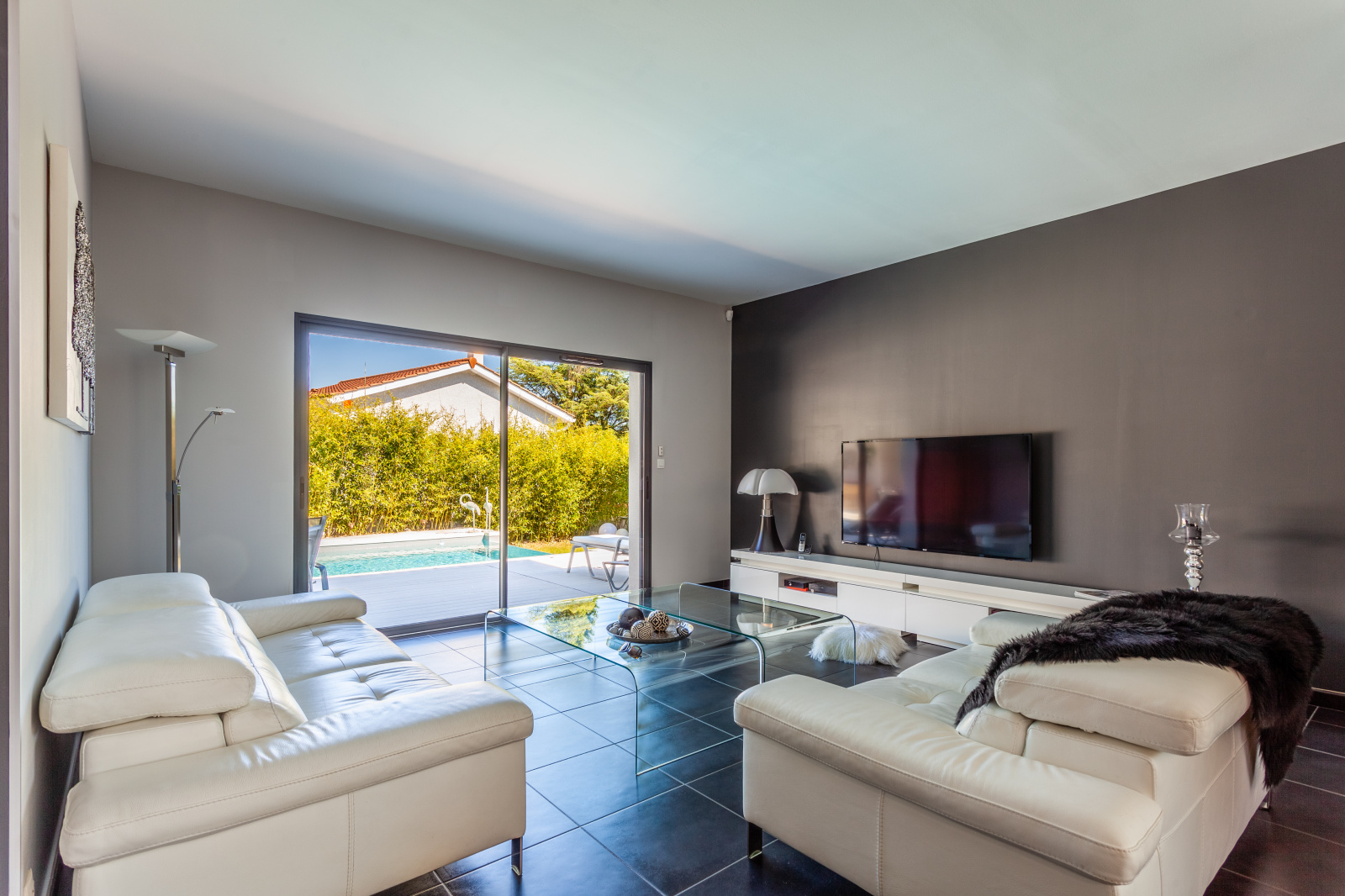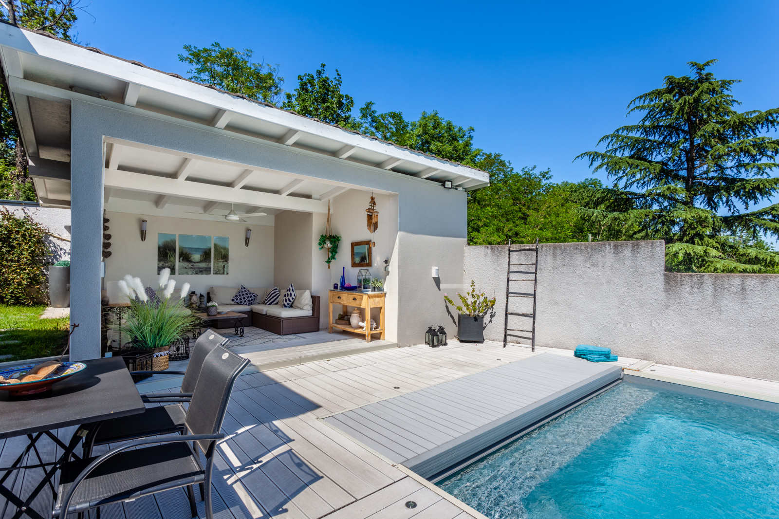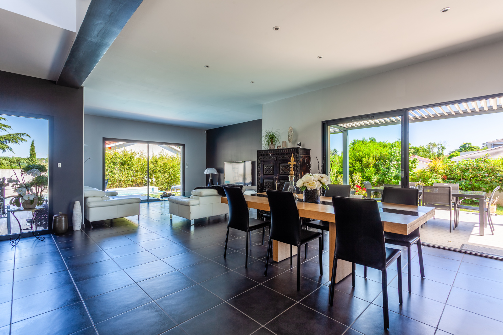 VENDU PAR L'AGENCE - FRANCHEVILLE BEL AIR, LIMITE TASSIN, EXCLUSIVITE WHITE IMMO, superbe maison contemporaine de 176 m2 sur un terrain paysagé et clos de 860 m2 avec piscine. Lumineuse pièce de vie de 75 m2, avec cuisine US entièrement équipée, 4 chambres dont 2 de plain pied. Salle de bains et salle d'eau. De nombreuses terrasses dalées, avec pergola bio climatique, pool house avec petit salon d'été. Prestations de grande qualité. buanderie, garage. Terrain de boules. Piscine à débordement, sécurisée et chauffée. Fibre. DPE D. Votre contact : Sandrine ou Caroline Agence White Immo 04 72 44 42 00.