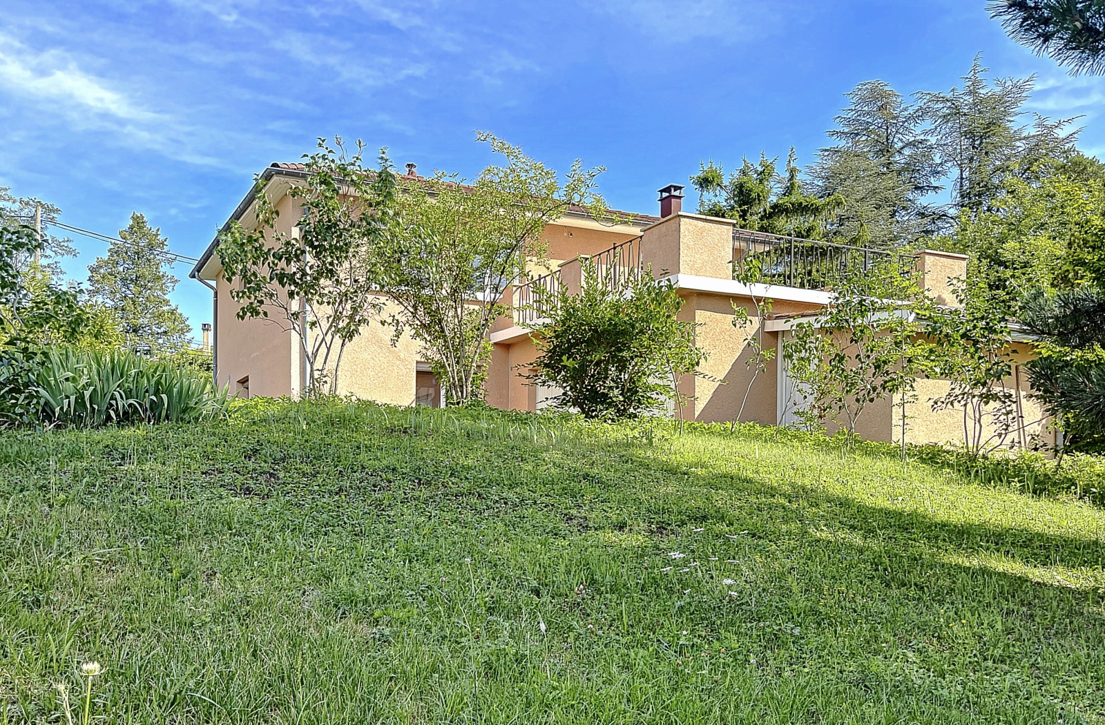 VENDU PAR L'AGENCE FRANCHEVILLE LE HAUT, au coeur d'un quartier résidentiel, sur un très beau terrain arboré de 1520 m2, maison d'environ 150 m2 habitables avec 4 chambres, salle de bains, salle de jeux, buanderie / chaufferie, cellier et double garage de 35 m2. Spacieuse terrasse dominante avec vue dégagée. Huisseries de 2015 en double vitrage et volets roulants motorisés, chauffage central gaz de ville. A 2 pas du Bus C20 E (direct Bellecour) et du ramassage scolaire pour le collège. Notre avis : coup de coeur sur la terrasse dominante exposée sud ouest. Prix affiché frais d'agence inclus (honoraire charge vendeur). Votre contact : Agence white immo 04 72 44 42 00. Le nom de code à donner pour tout renseignement : "la vie en rose"