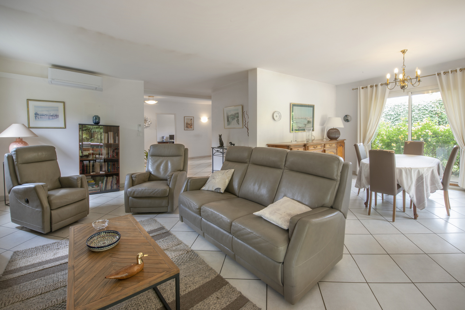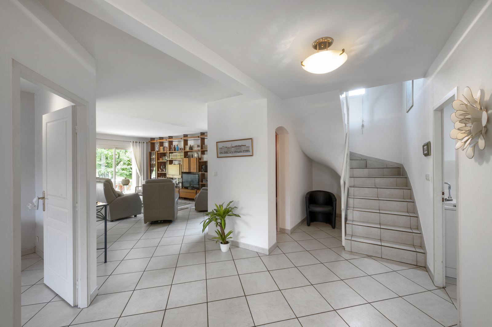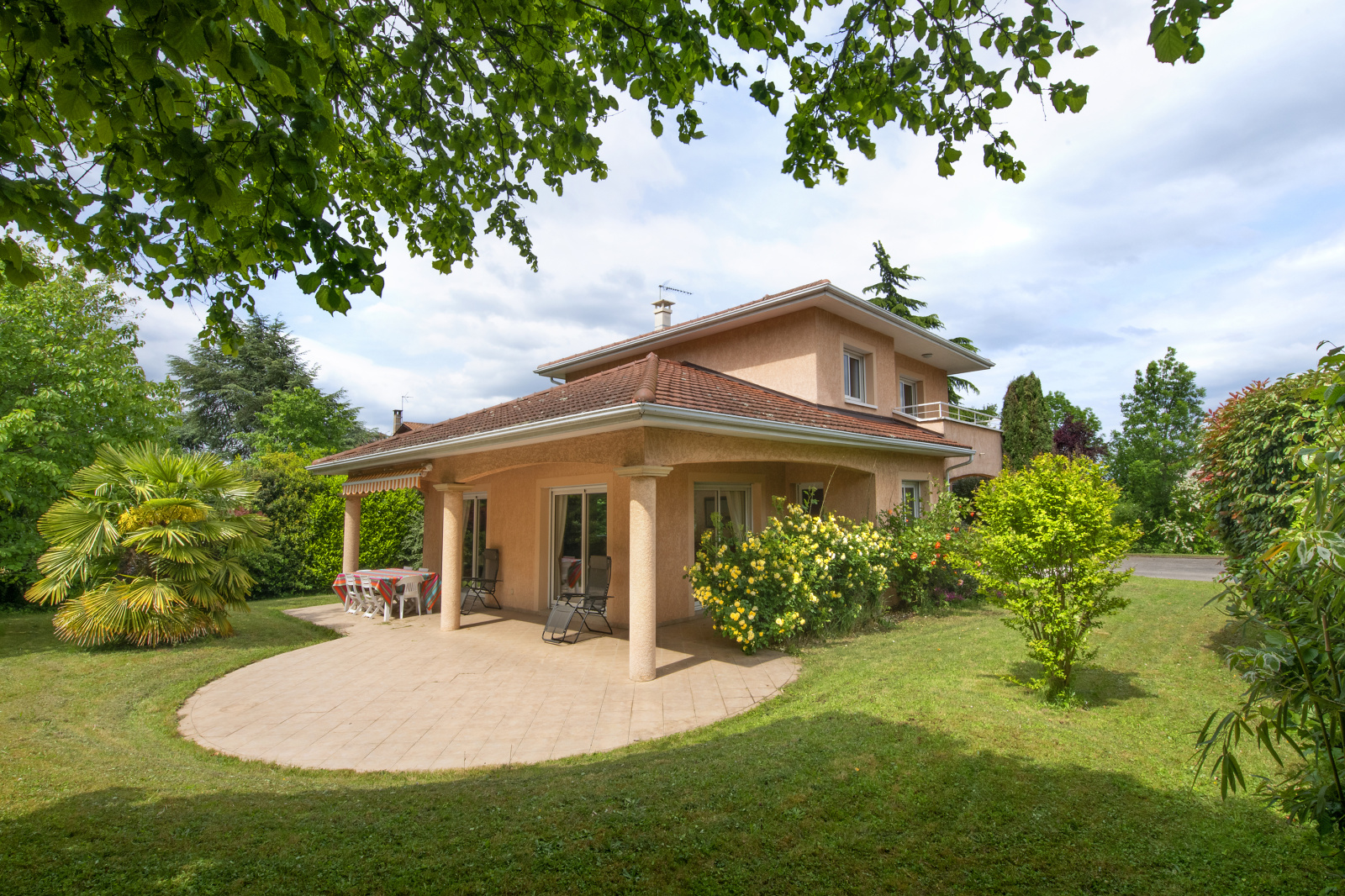 VENDU PAR L'AGENCE - FRANCHEVILLE LE HAUT, CO-EXCLUSIVITE WHITE IMMO, dans un environnement résidentiel et entièrement au calme, sur une superbe parcelle de terrain de 1400 m² plat, arboré et piscinable. Très belle maison des années 2000 de 145 m2 habitable très bien entretenue. De plain pied : Entrée, cuisine (Poss US) entièrement équipée donnant sur une terrasse couverte plein Sud. Très belle pièce de vie avec accès également sur la terrasse et le jardin Sud/Ouest. 1 chambre. 1 salle d'eau/buanderie/chaufferie. A l'étage : 2/3 chambres dont 1 avec terrasse. 1 grande salle de bains avec fenêtre. 1 garage isolé de 45 m2 avec porte motorisée, cellier. 1 portail électrique + 1 portillon. Chauffage gaz de ville, au sol au RDC. Climatisation. Double vitrage. Volets roulants électriques. DPE : D. Possibilité d'extension CES 0,20 %. Bus C20 E à 2 pas. Quartier résidentiel où il fait bon vivre. Prix affiché frais d'agence inclus (honoraires charge vendeur). Votre contact : Sandrine Vacher 07 60 36 34 04 White Immo l'Agence 04 72 44 42 00