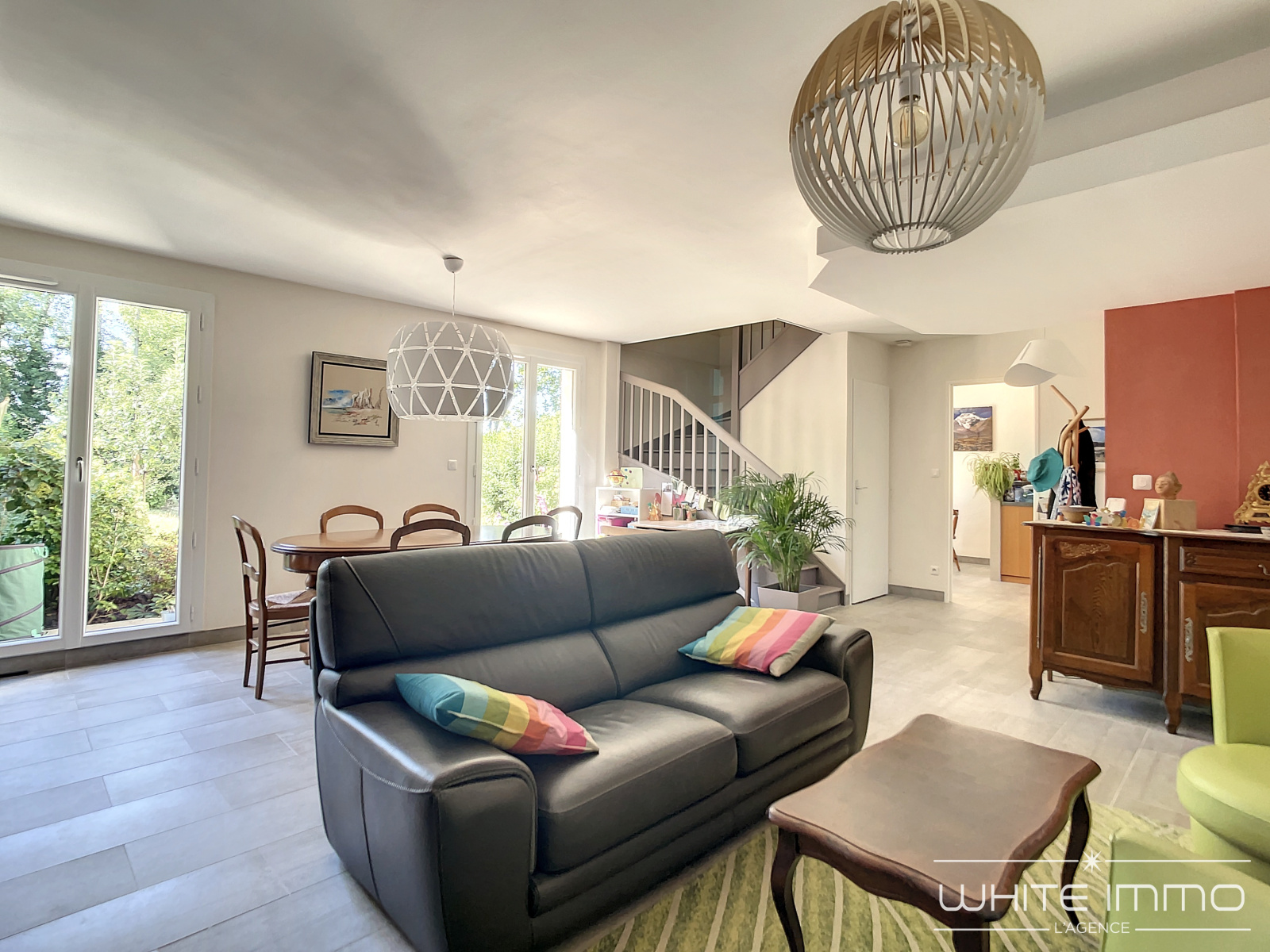 "VENDU PAR L'AGENCE" FRANCHEVILLE LE HAUT, EXCLUSIVITE WHITE IMMO. Au centre du village, charmante maison de 113 m2 ultra fonctionnelle, sur un terrain plat de 410 m2. De plain pied, entrée donnant sur très belle pièce de vie de 32 m2 avec un accès direct sur le jardin. spacieuse cuisine équipée de 18 m2 avec coin repas. Buanderie. WC. Accès au garage 1 voiture + bel espace de rangements (vélos), prise dans le garage pour le chargement d'une voiture électrique. A l'étage : 4 chambres dont 1 suite parentale avec salle de bains, parquet au sol + 1 salle d'eau et WC. Exposition Est/Ouest. Double vitrage de qualité récent, isolation des combles, poêle à granulés programmable. A 3 minutes à pied de toutes les commodités : bus, crèche, écoles et commerces. Notre avis : Idéal pour une famille. Votre contact : Sandrine Vacher 07 60 36 34 04 Agence White Immo 04 72 44 42 00.