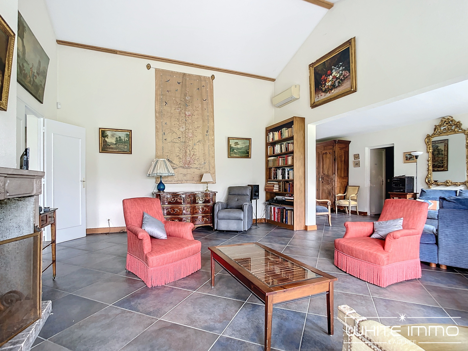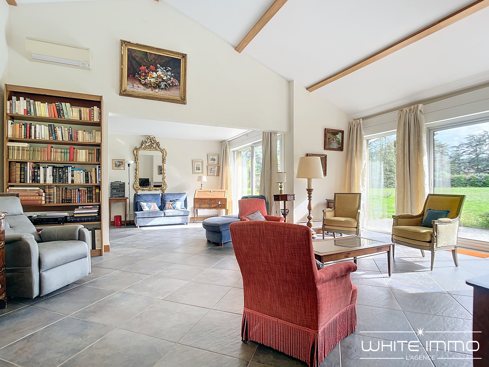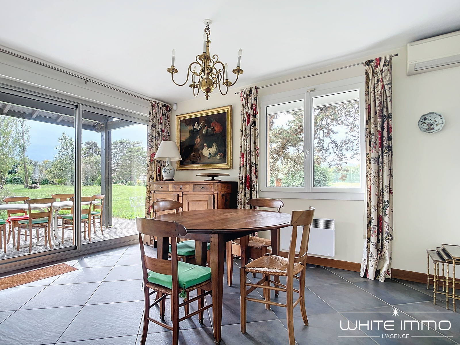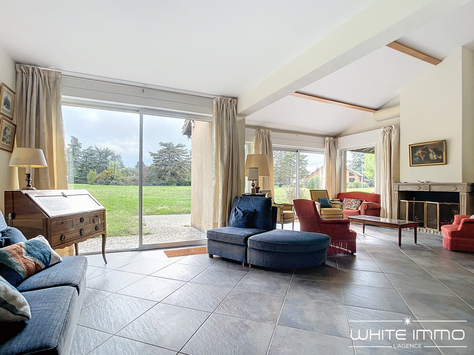 VENDU PAR L'AGENCE - FRANCHEVILLE LE HAUT, RARE ! Centre Village, au calme absolu, au coeur d'un parc UNIQUE et EXCEPTIONNEL, sur une parcelle de terrain de 5000 m2, maison individuelle de construction traditionnelle, d'une superficie de 174 m2 habitable. Maison entièrement de PLAIN-PIED au plan très fonctionnel : Très grande et lumineuse pièce de vie de 54 m2 avec cheminée ancienne (décorative) bénéficiant de belles hauteurs sous plafond. Cuisine équipée et son coin repas (27 m2 au total) donnant sur une terrasse Sud-Ouest, avec cellier/ buanderie attenants. Espace nuit avec 4 chambres (13,95 / 14,89 / 11 et 9 m2) dont 1 suite parentale, salle de bains et salle d'eau. Spacieux garage double d'environ 30 m2. Chauffage individuel électrique + climatisation réversible. DPE D. Piscine comme un bassin de nage de 15 X4, en très bon état avec volet immergé, et terrain de tennis (à rénover). Dans le village, donc à 2 pas des commerces, écoles et des bus (C20 / C20 E).