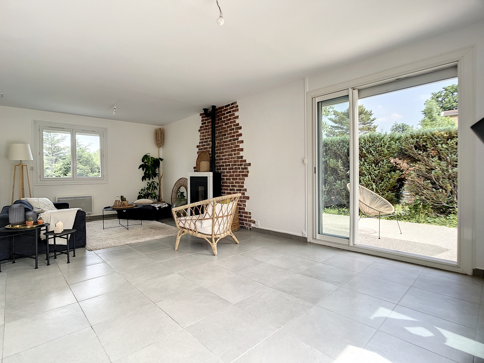 VENDU PAR L'AGENCE, FRANCHEVILLE LE HAUT, CO-EXCLUSIVITE WHITE IMMO / IMMO A REPENSER. Dans un quartier résidentiel, en fond d'impasse, au calme, très jolie maison de 153 m2 sur une parcelle de terrain de 961 M2. 103 M2 entièrement de plain pied et donnant directement en baies vitrées sur le jardin, séjour double avec poële à granules. Exposition E/S/O. La cuisine est indépendante et meublée. Toujours de plain pied, nous avons 3 chambres (10 / 11,60 12,50 M2). 1 salle de bains avec douche et baignoire refaite. A l'étage du dessous 46 M2 avec une belle hauteur sous plafond, nous avons 2 chambres( 11,30 / 12,25 ) 1 salle d'eau à refaire et 1 grande pièce de 18 m2 pouvant convenir à plusieurs destinations. 1 garage de 63 M2 avec une porte motorisée. Parcelle de terrain de 961 m2 piscinable. Double vitrage PVC et Alu sur toutes les ouvertures. Volets roulants électriques. Poële à granules avec recuperateur d'air chaud. VMC double flux. Panneaux solaires avec un contrat retrocédent 1000 euros /env à l'année. DPE : E. A proximité des bus (C20 E direct Bellecour) Notre avis : maison saine. Facile à vivre. Prix affiché frais d'agence inclus (charge vendeur. Votre contact : Sandrine Vacher White Immo l'agence 07 60 36 34 04. Nom de code à donner pour tout renseignement : "Coquelicot"