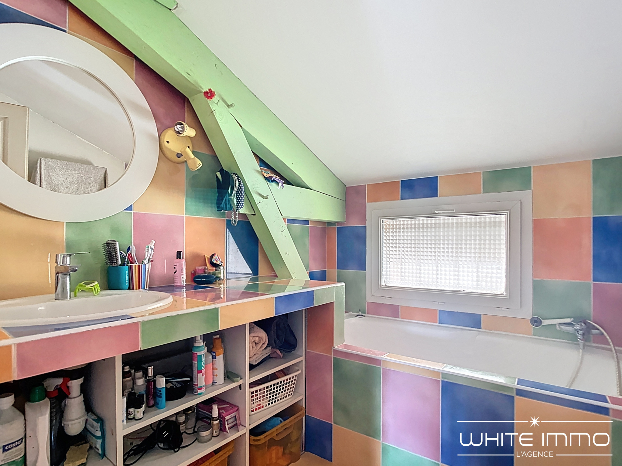 A l'étage, un espace mezzanine surplombe le salon, parfait pour un coin jeux, télé ou un bureau, 3 chambres de bonnes tailles, dressing et salle de bains, Wc séparés.
