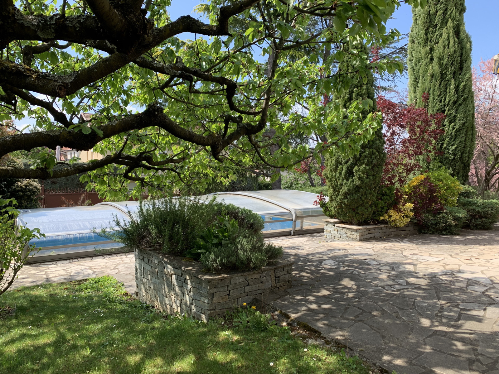 VENDU PAR L'AGENCE - FRANCHEVILLE LE HAUT, EXCLUSIVITE WHITE IMMO, très bien située, au calme, à proximité d'un arrêt de bus (C20E), maison de famille d'environ 195 m2 : lumineuse pièce de vie avec cheminée donnant de plain pied sur une grande terrasse. Cuisine équipée indépendante (possibilité US). Veranda attenante. 6 chambres (dont 2 de plain pied) + bureau. 2 salles d'eau, 1 salle de bains. Buanderie. Sous-sol avec atelier, double garage, cave et vide sanitaire. Double vitrage, chauffage gaz de ville. Terrain arboré d'environ 1000 m2, avec piscine sécurisée. Prix affiché frais d'agence inclus (honoraires charge vendeur). Votre contact : Sandrine Vacher 07 60 36 34 04. White Immo l'Agence : 04 72 44 42 00