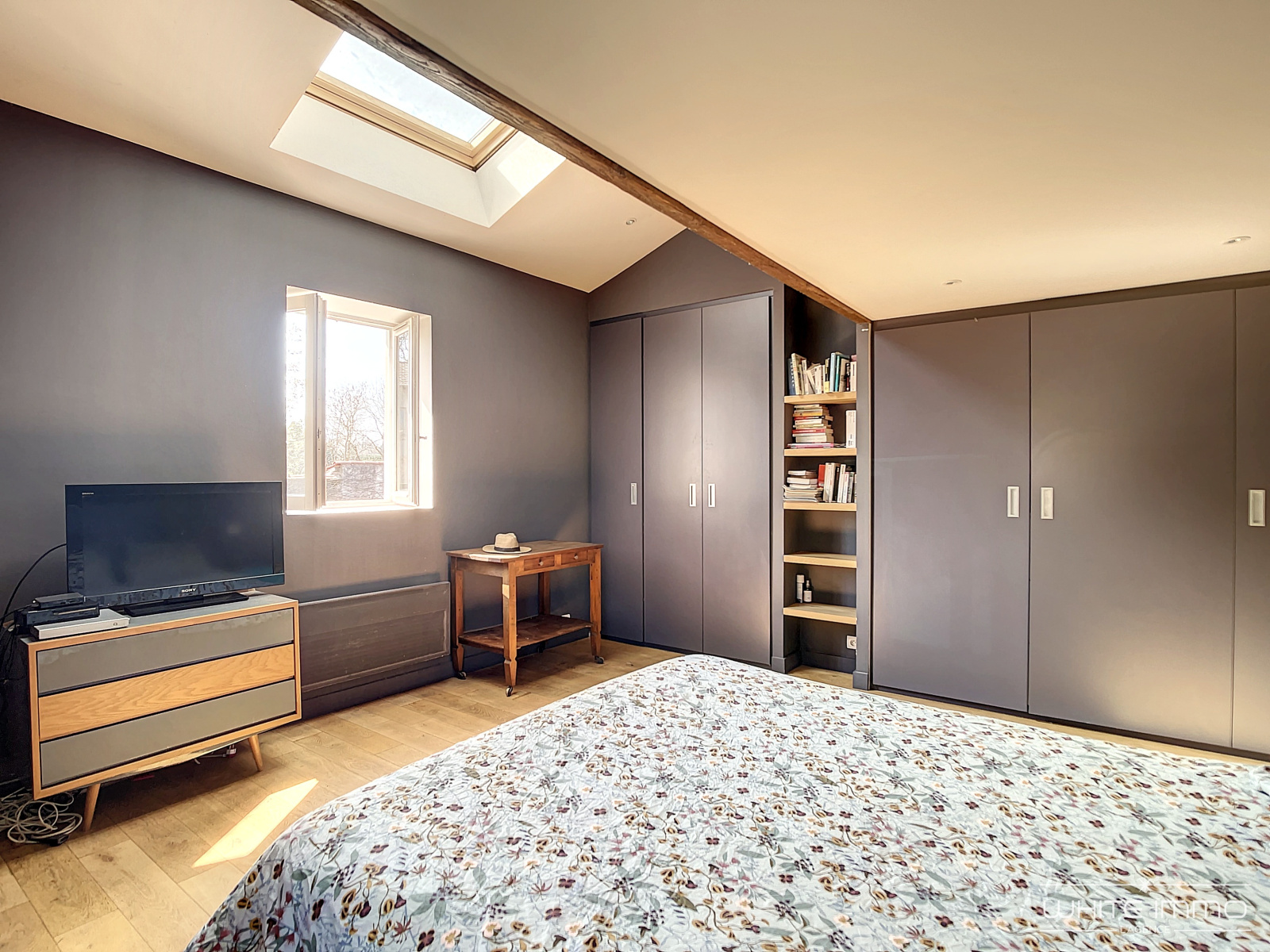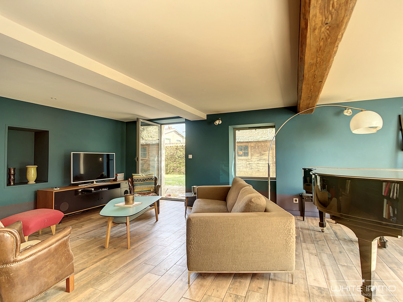 VENDU PAR L'AGENCE - CHAPONOST, A 300 METRES DE LA COMMUNE FRANCHEVILLE LE HAUT, WHITE IMMO, sur un terrain clos de murs, de 400 m2, sans vis à vis, en fond d’impasse d’un petit hameau au calme absolu, charmante maison ancienne de 145 m2 habitables (165 m2 au sol), mélangeant habilement ancien et contemporain. De plain pied, entrée sur grande cuisine équipée et belle pièce de vie donnant sur terrasse plein Sud. 1er étage tout en parquet chêne, 3 chambres dont une magnifique suite parentale aux volumes hors normes et 2 salles de bains. Au 2ème étage, 1 chambre et 1 bureau en sous pente. Grenier. Maison en pierre et pisé, huisseries en double vitrage (aluminium et bois), chauffage au sol électrique. Possiblité d'installer une cheminée (conduit en attente). DPE D. Garage en bois posé sur dalle béton. Bus accessibles à pied. Notre avis : une maison de caractère. Prix affiché frais d'agence inclus (honoraires charge vendeur). Votre contact : Caroline CHOSTAK 07 60 36 26 09. Le nom de code à donner pour tout renseignement : "le hameau".
