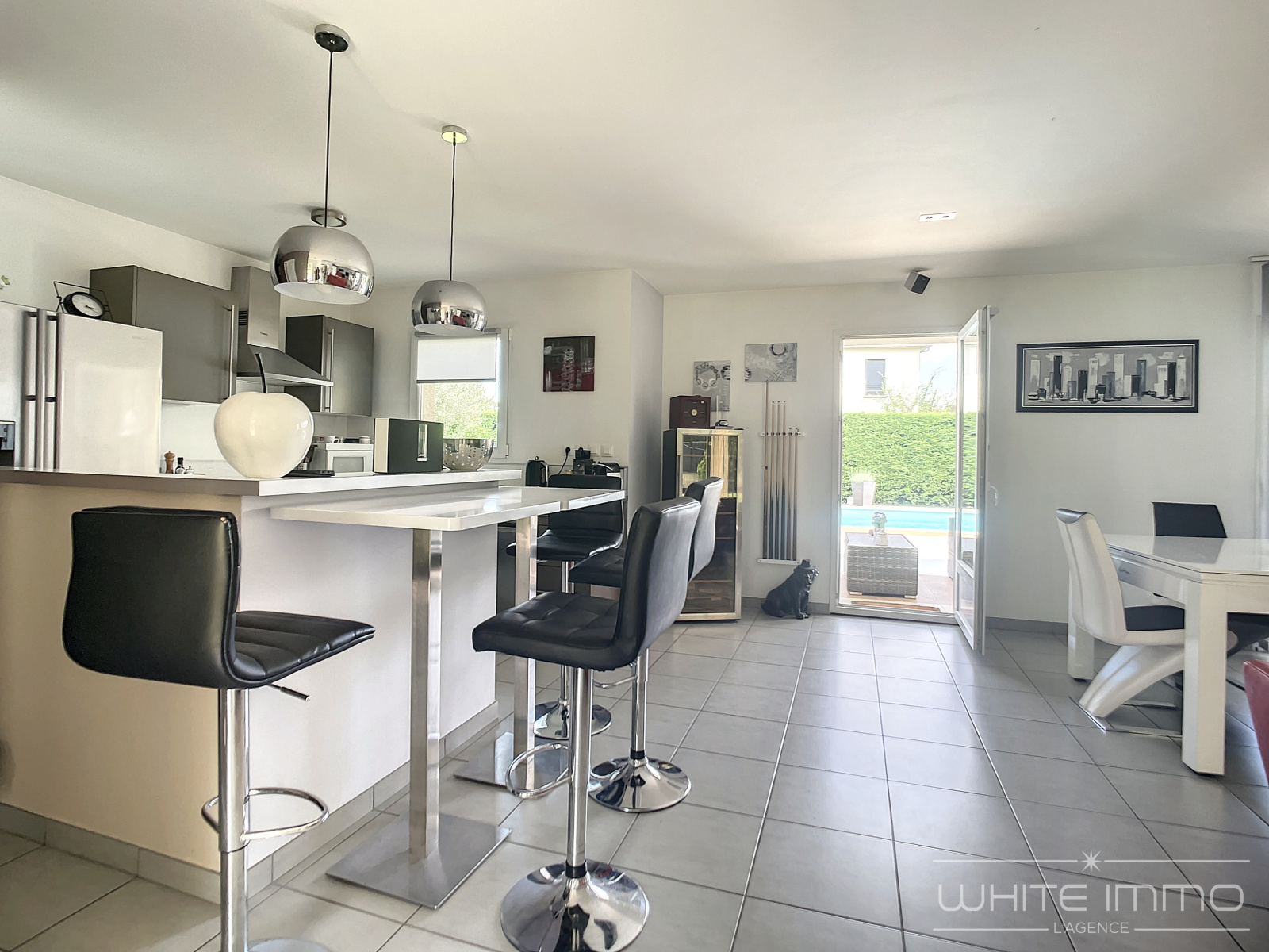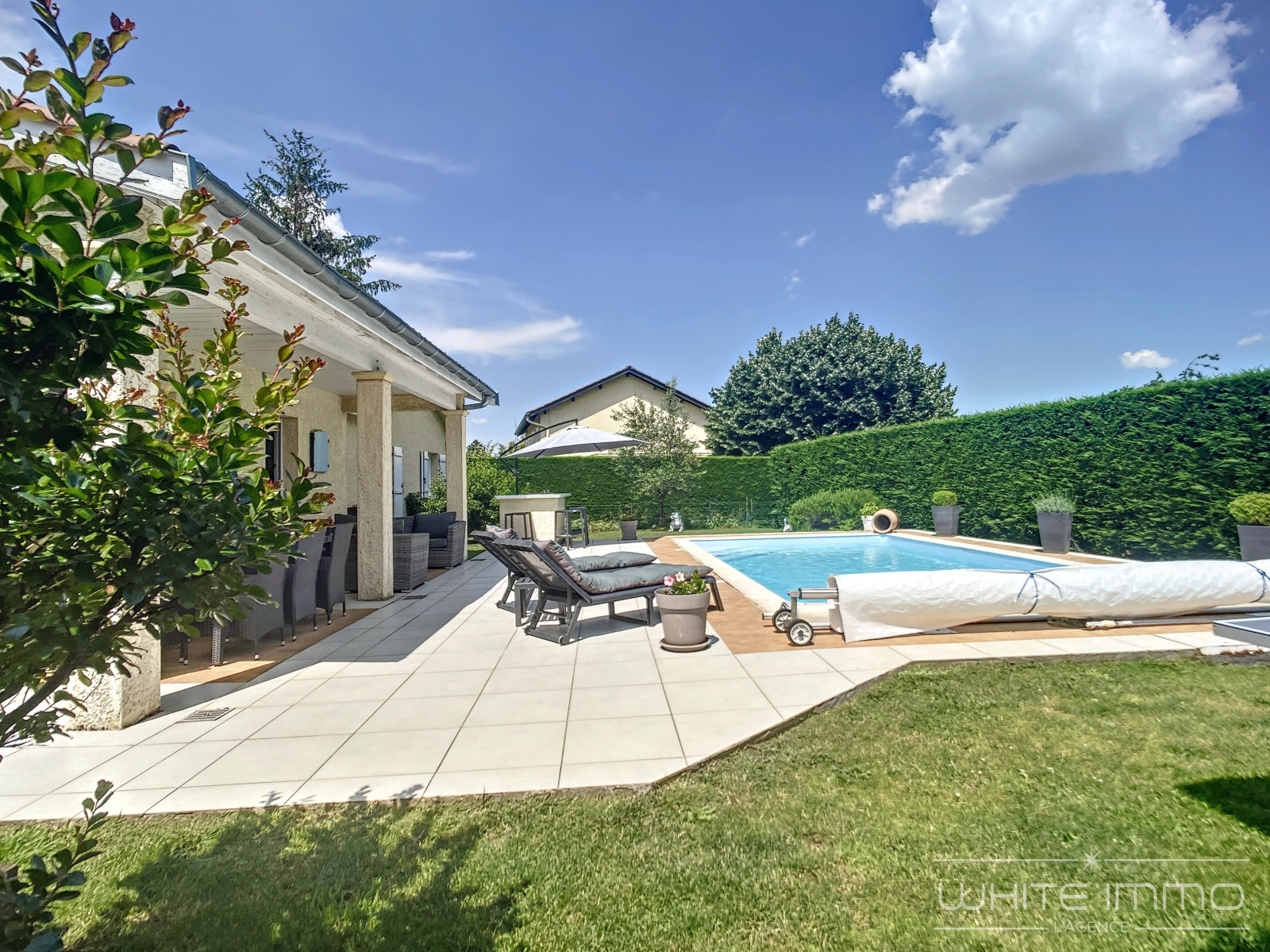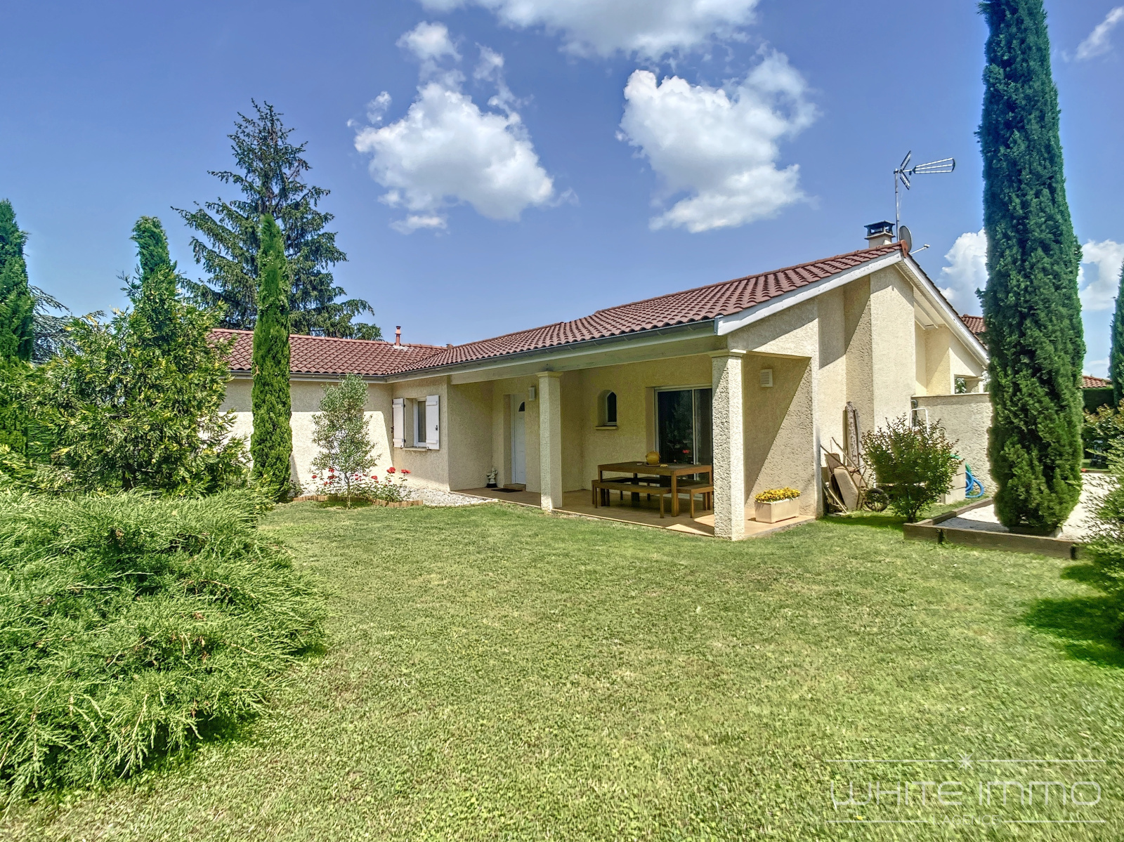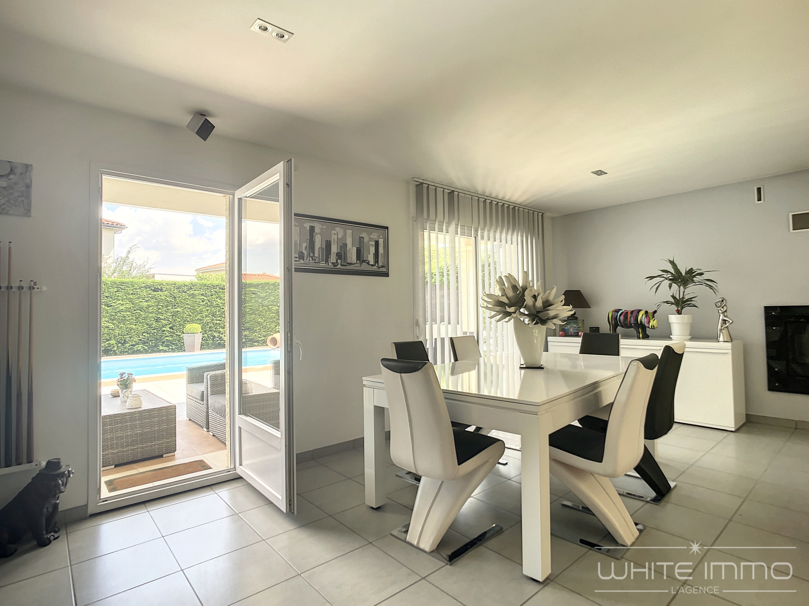 VENDU PAR L'AGENCE - BRINDAS, EXCLUSIVITE WHITE IMMO, Très jolie maison individuelle d'environ 100 m², sur une parcelle de terrain de 730 m², entièrement de plain pied, au calme tout en étant proche du collège. Belle pièce de vie traversante de 48 m² comprenant séjour, salle à manger (cheminée), cuisine (Mobalpa) entièrement équipée. 3 chambres ( 11,85 / 12 / 12,37 m²). 1 grande salle d'eau. Huisseries double vitrage PVC. Volets roulants électriques et volets bois. Chauffage au sol dans la pièce de vie et radiateurs dans les chambres (gaz de ville). Garage de 46 m² + 2 places de stationnement devant le garage. Portail motorisé. Piscine 8 X 4 au chlore. Terrain de pétanque. 2 terrasses abritées. Terrain de 730 m² clos et arboré. DPE : C. Notre avis : "une maison facile à vivre". Prix affiché, frais d'agence inclus (honoraires charge vendeur). Votre contact : Sandrine Vacher White Immo l'Agence 07 60 36 34 04. Nom de code à donner : "Fanny"